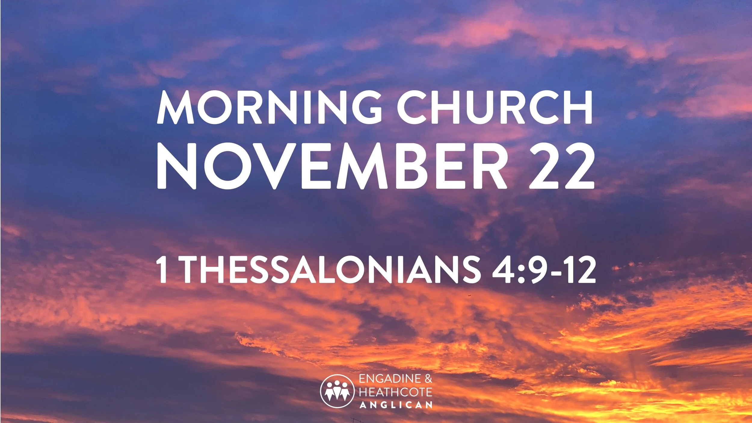 November 22 Morning All Online Service1 Thessalonians 21 Nov Written By Guest User 2 options for church: physical or online Sermon Outline Connect Card Heathcote Anglican Prayer Group Zoom - 2:00pm If this video isn’t working, press this button to be taken to our youtube account: Backup Location (Youtube) 1 Thessaloniansehac1 Thessalonians 4:9-12 Guest User