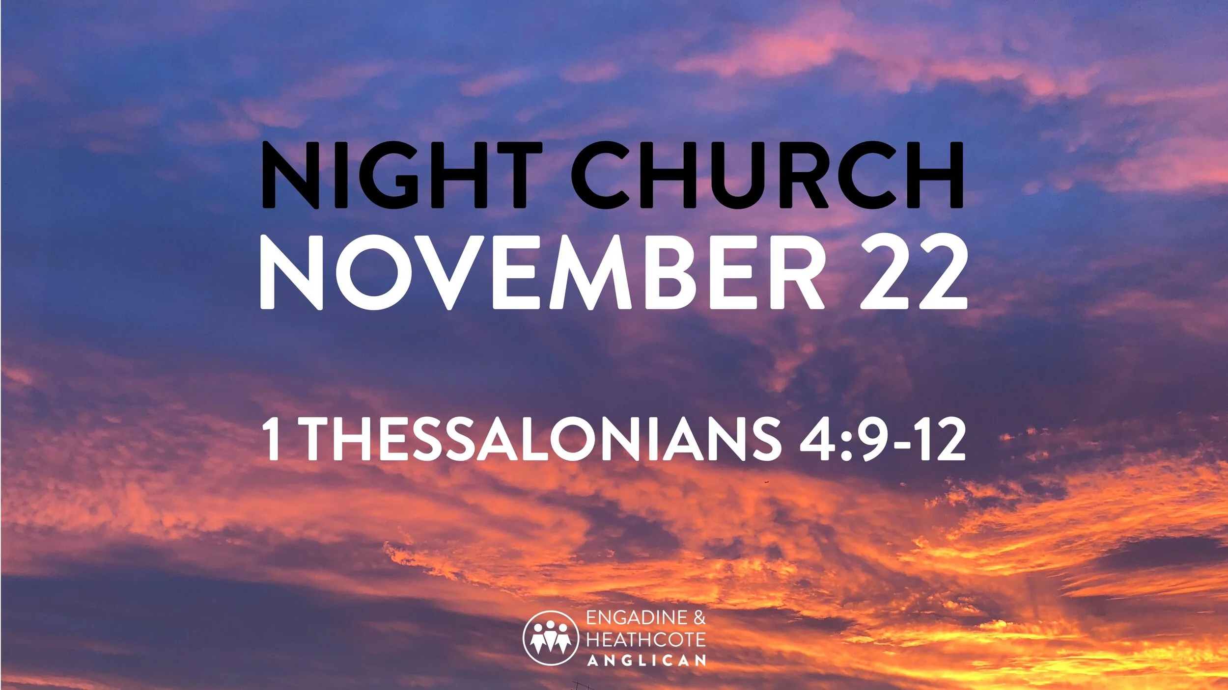 November 22 Night All Online Service1 Thessalonians 21 Nov Written By Daniel Bishop 2 options for church: physical or online Sermon Outline Connect Card If this video isn’t working, press this button to be taken to our Youtube and Facebook page: Backup Location (Youtube) Backup Location (Facebook) 1 Thessalonians1 Thessalonians 4:9-12 Daniel Bishop