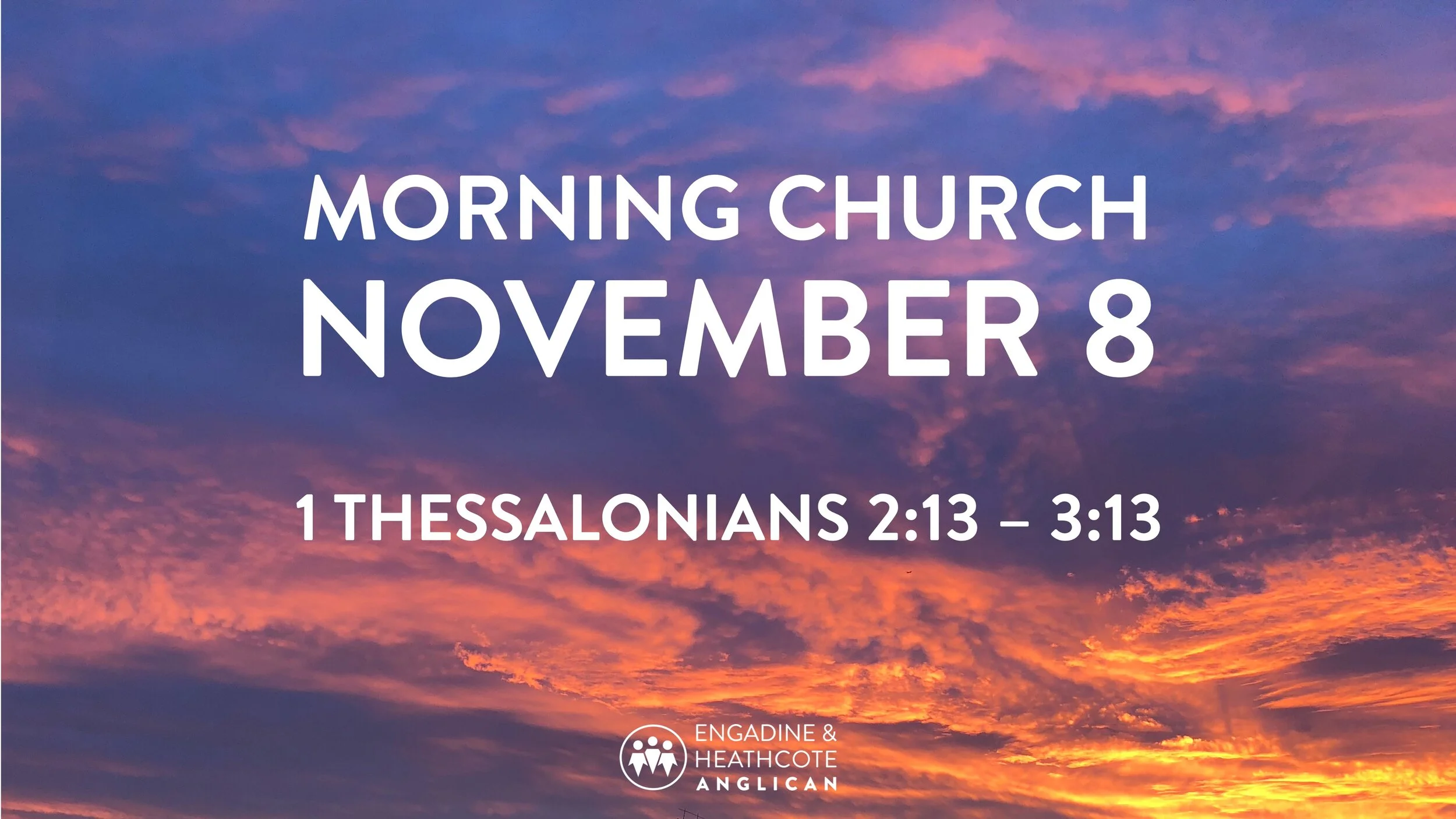 November 8 Morning All Online Service1 Thessalonians 4 Nov Written By Guest User 2 options for church: physical or online Sermon Outline Connect Card Heathcote Anglican Zoom - 10:00am before Church If this video isn’t working, press this button to be taken to our youtube account: Backup Location (Youtube) 1 Thessaloniansehac1 Thessalonians 2:1-121 Thessalonians 2:13-3:13 Guest User